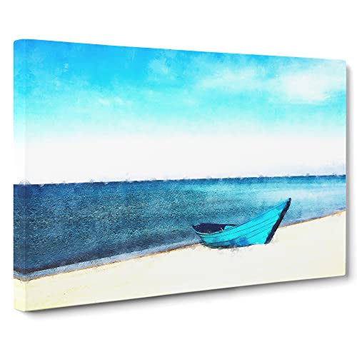 Blue Boat Upon The Beach Painting Modern Art Canvas Wall Art Print Ready to Hang, Framed Picture for Living Room Bedroom Home Office Décor, 20x14 Inch (50x35 cm)