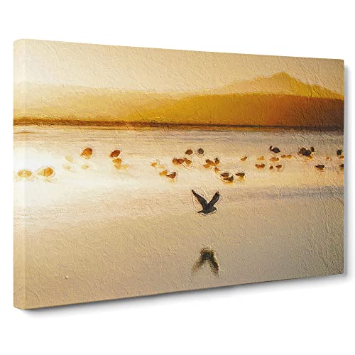 Birds On The Beach Modern Art Canvas Wall Art Print Ready to Hang, Framed Picture for Living Room Bedroom Home Office Décor, 30x20 Inch (76x50 cm)