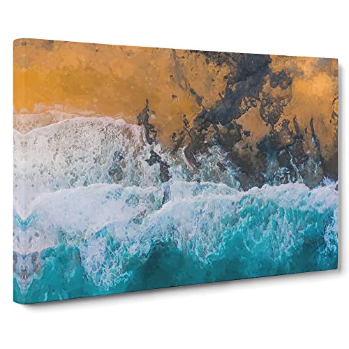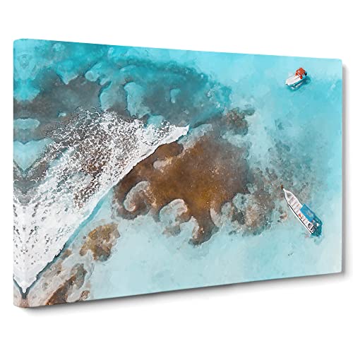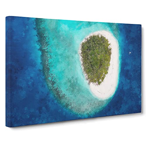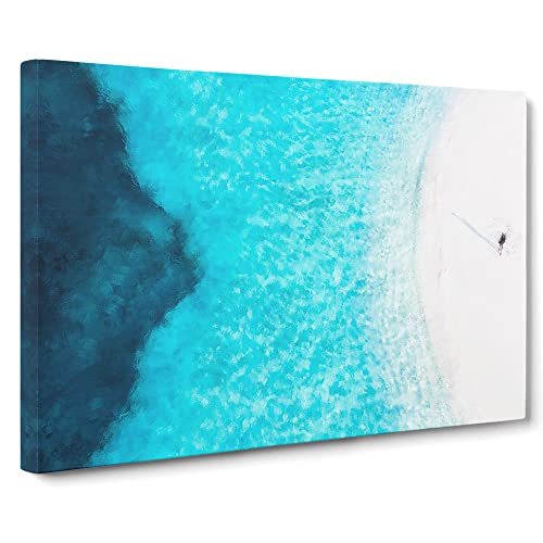 Above A Beach In The Maldives Painting Modern Art Canvas Wall Art Print Ready to Hang, Framed Picture for Living Room Bedroom Home Office Décor, 30x20 Inch (76x50 cm)