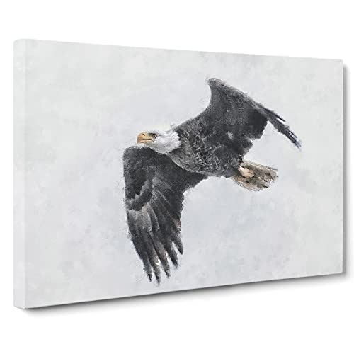 Bald Eagle High In The Sky Painting Modern Art Canvas Wall Art Print Ready to Hang, Framed Picture for Living Room Bedroom Home Office Décor, 20x14 Inch (50x35 cm)