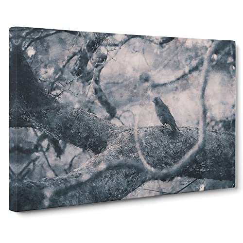 Bird On The Tree Painting Modern Art Canvas Wall Art Print Ready to Hang, Framed Picture for Living Room Bedroom Home Office Décor, 30x20 Inch (76x50 cm)