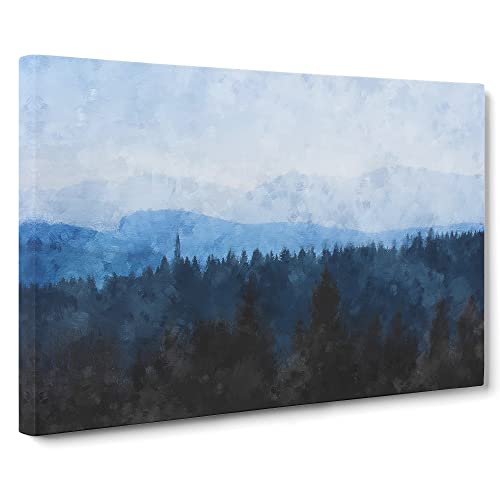 Church Beyond The Forest Painting Modern Art Canvas Wall Art Print Ready to Hang, Framed Picture for Living Room Bedroom Home Office Décor, 30x20 Inch (76x50 cm)