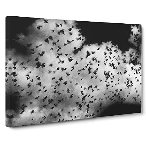 Birds On The Move Painting Modern Art Canvas Wall Art Print Ready to Hang, Framed Picture for Living Room Bedroom Home Office Décor, 20x14 Inch (50x35 cm)