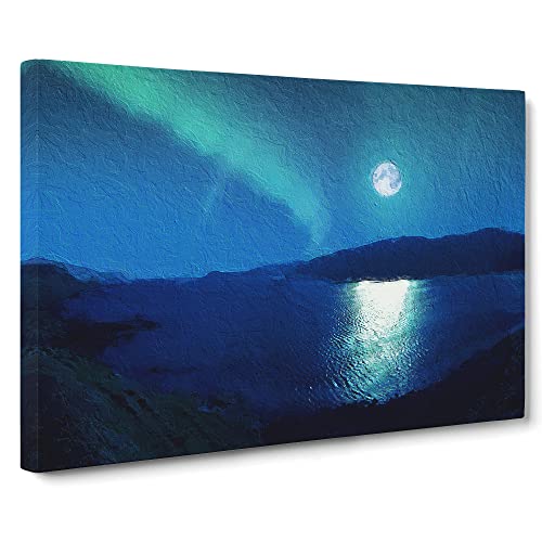 Full Moon During The Northern Lights Modern Art Canvas Wall Art Print Ready to Hang, Framed Picture for Living Room Bedroom Home Office Décor, 20x14 Inch (50x35 cm)