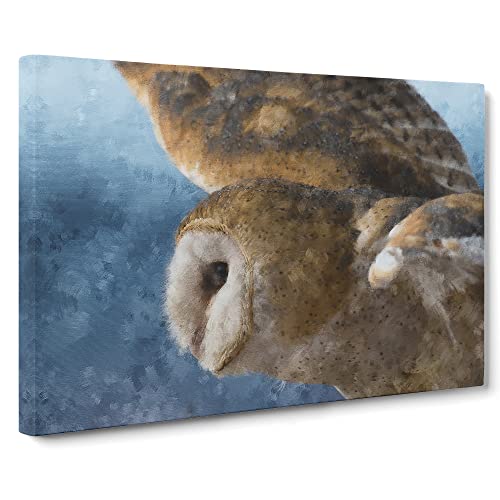 Barn Owl In The Snow Painting Modern Art Canvas Wall Art Print Ready to Hang, Framed Picture for Living Room Bedroom Home Office Décor, 30x20 Inch (76x50 cm)