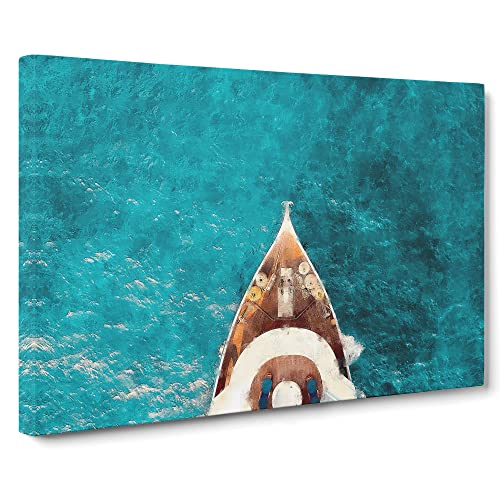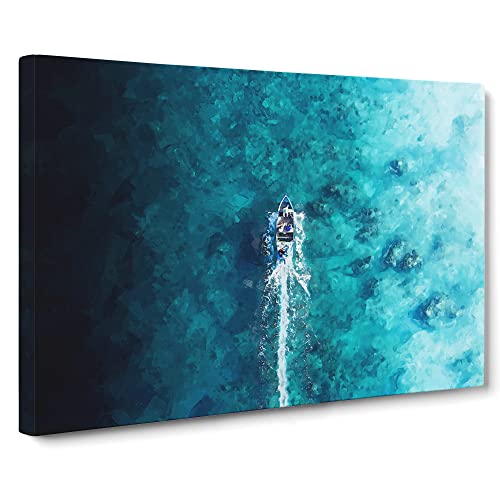 Boat In The Maldives Modern Art Canvas Wall Art Print Ready to Hang, Framed Picture for Living Room Bedroom Home Office Décor, 24x16 Inch (60x40 cm)