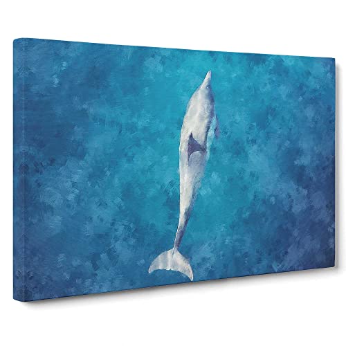 Dolphin Leading The Way Painting Modern Art Canvas Wall Art Print Ready to Hang, Framed Picture for Living Room Bedroom Home Office Décor, 24x16 Inch (60x40 cm)