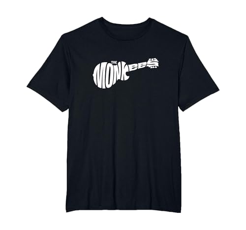 The Monkees Classic White Guitar Logo Black T-Shirt, Men, Black, Small
