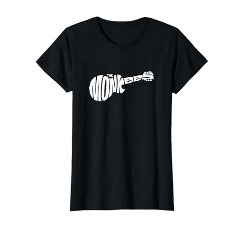 The Monkees Classic White Guitar Logo Black T-Shirt, Women, Black, X-Large