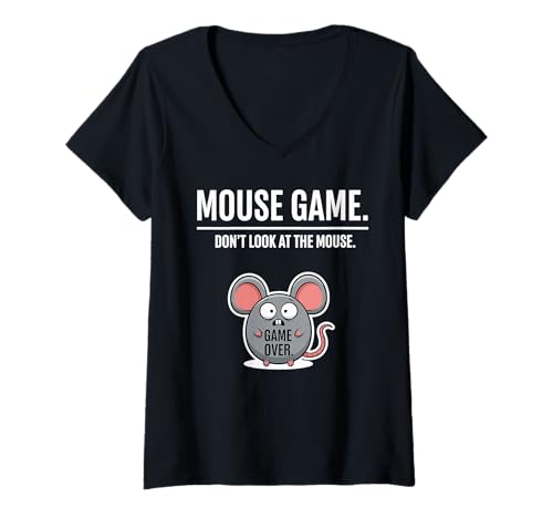 Womens Cute Animal Humor Joke Mouse Game Don’t Look at The Mouse V-Neck T-Shirt