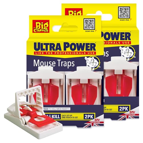The Big Cheese Ultra Power Ready-Baited Mouse Trap - Twin Pack - Reusable Mouse Traps For Indoor & Outdoor Use - Humane Mouse-Trap - Easy to Clean Plastic Mice Trap - Prebaited Rodent Trap