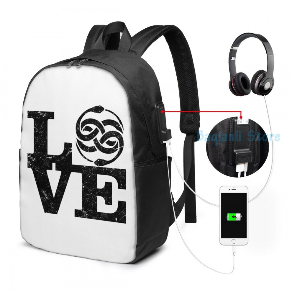Funny Graphic print The NeverEnding Story Snake Symbol USB Charge Backpack men School bags Women bag Travel laptop bag