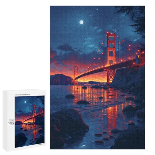 1000 PCS Teenager Pieces Jigsaw Puzzle Golden Gate Bridge Night Lights Jigsaw Puzzles for Teenagers But Fun And Humorous Help The Brain Exercise Family Fun & Game Night 1000 PCS