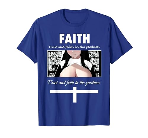Trust and Faith in The Goodness Anime Nun Anime Girl Otaku T-Shirt, Women, Royal Blue, Large