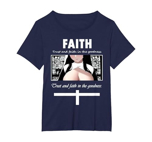 Trust and Faith in The Goodness Anime Nun Anime Girl Otaku T-Shirt, Women's Plus, Navy Blue, 4X