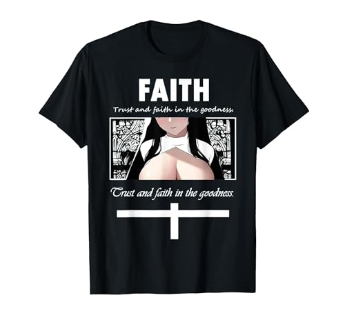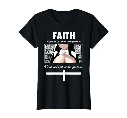 Trust and Faith in The Goodness Anime Nun Anime Girl Otaku T-Shirt, Women, Black, Large