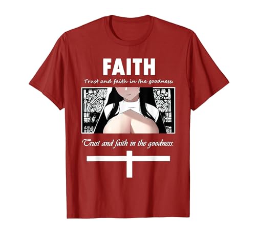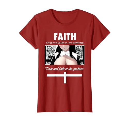 Trust and Faith in The Goodness Anime Nun Anime Girl Otaku T-Shirt, Women, Cranberry Red, X-Large