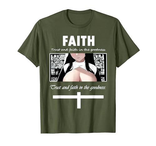 Trust and Faith in The Goodness Anime Nun Anime Girl Otaku T-Shirt, Men, Olive Green, Large