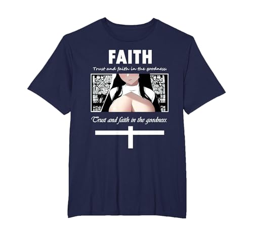 Trust and Faith in The Goodness Anime Nun Anime Girl Otaku T-Shirt, Men, Navy Blue, X-Large