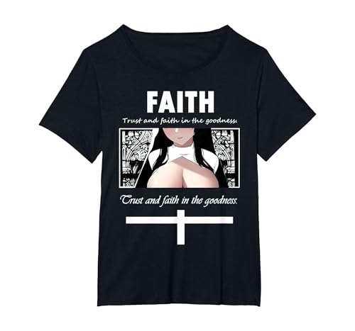 Trust and Faith in The Goodness Anime Nun Anime Girl Otaku T-Shirt, Women's Plus, Black, 5X