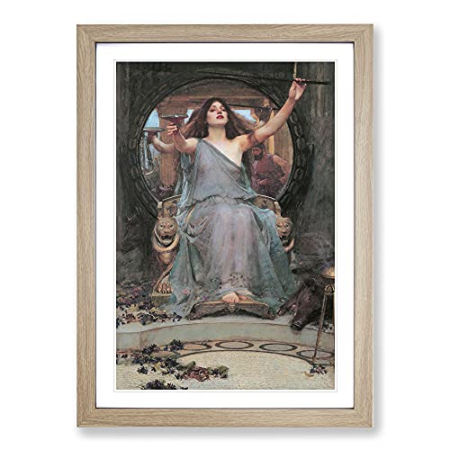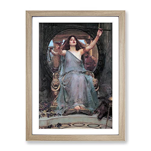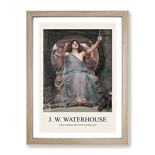 Circe Offering The Cup To Odysseus By John William Waterhouse Classic Painting Framed Wall Art Print, Ready to Hang Picture for Living Room Bedroom Home Office Décor, Oak A2 (64 x 46 cm)
