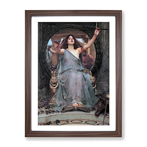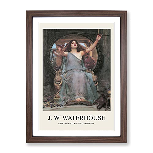 Circe Offering The Cup To Odysseus By John William Waterhouse Exhibition Museum Painting Framed Wall Art Print, Ready to Hang Picture for Living Room Bedroom Home Office Décor, Walnut A2 (64 x 46 cm)