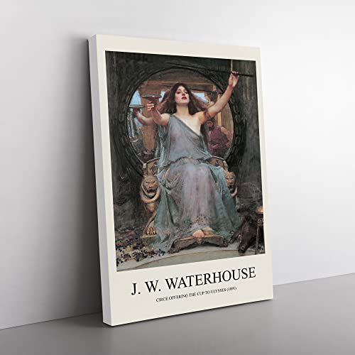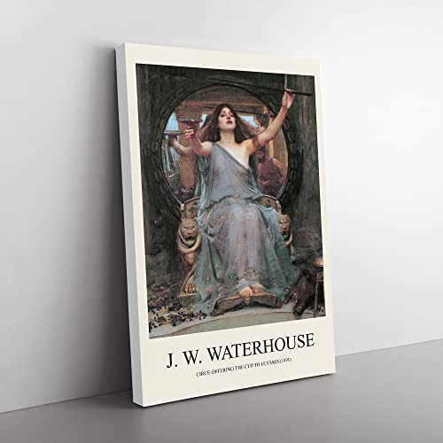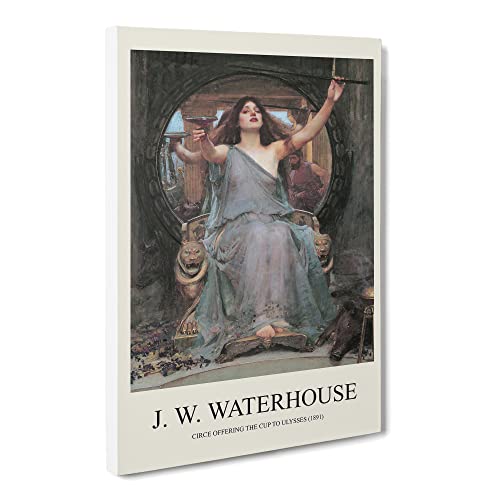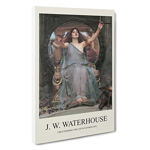 Circe Offering The Cup To Odysseus By John William Waterhouse Exhibition Museum Painting Canvas Wall Art Print Ready to Hang, Framed Picture for Living Room Home Office Décor, 20x14 Inch (50x35 cm)