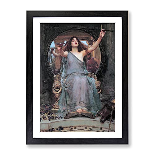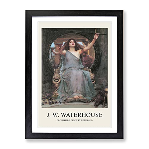 Circe Offering The Cup To Odysseus By John William Waterhouse Classic Painting Framed Wall Art Print, Ready to Hang Picture for Living Room Bedroom Home Office Décor, Black A3 (34 x 46 cm)