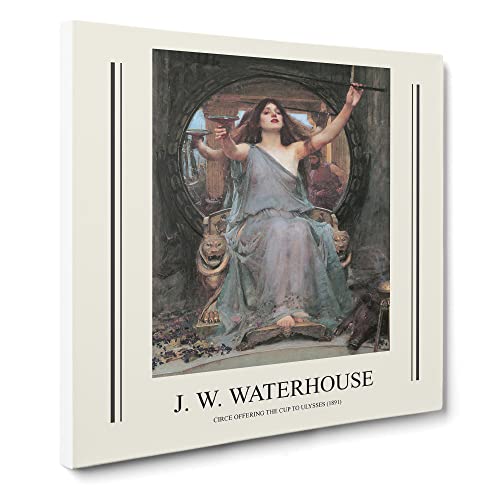 Circe Offering The Cup To Odysseus By John William Waterhouse Exhibition Museum Classic Painting Canvas Wall Art Print Ready to Hang, Framed Picture for Home Décor, 20x20 Inch (50x50 cm)