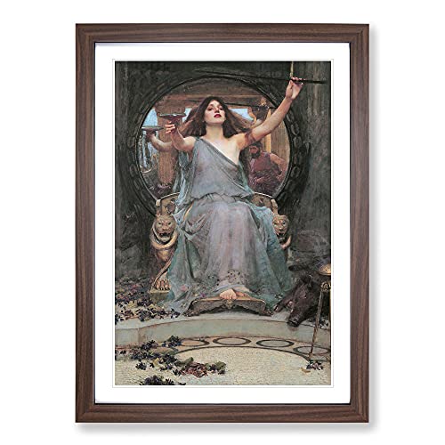 Circe Offering The Cup To Odysseus By John William Waterhouse Classic Painting Framed Wall Art Print, Ready to Hang Picture for Living Room Bedroom Home Office Décor, Walnut A3 (34 x 46 cm)