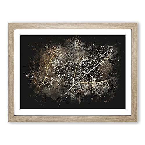 The Beauty Of An Autumn Leaf Paint Splash Modern Art Framed Wall Art Print, Ready to Hang Picture for Living Room Bedroom Home Office Décor, Oak A3 (46 x 34 cm)
