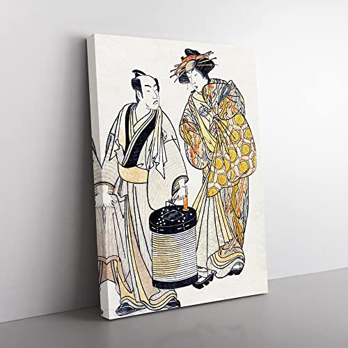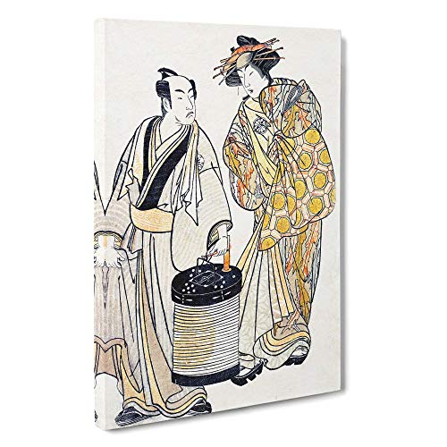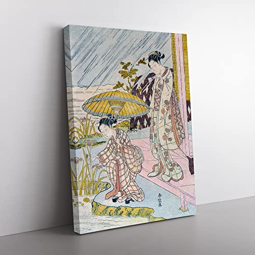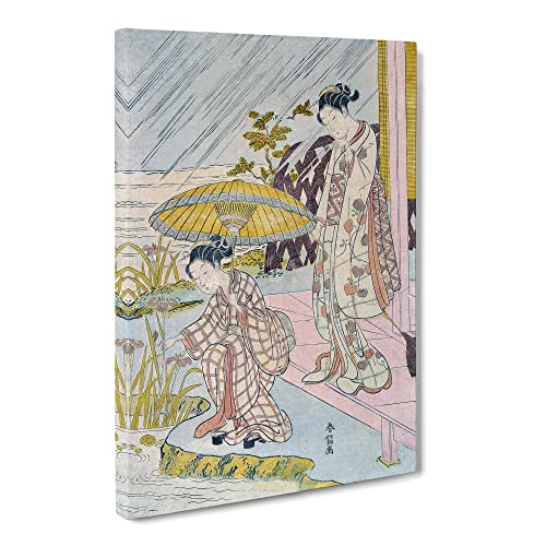 Admiring An Iris In The Rain By Harunobu Suzuki Asian Japanese Canvas Wall Art Print Ready to Hang, Framed Picture for Living Room Bedroom Home Office Décor, 76x50 cm (30x20 Inch)