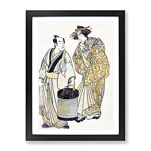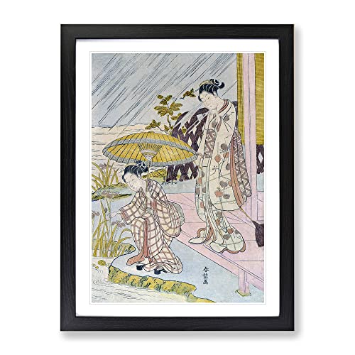 Admiring An Iris In The Rain By Harunobu Suzuki Asian Japanese Framed Wall Art Print, Ready to Hang Picture for Living Room Bedroom Home Office Décor, Black A2 (64 x 46 cm)