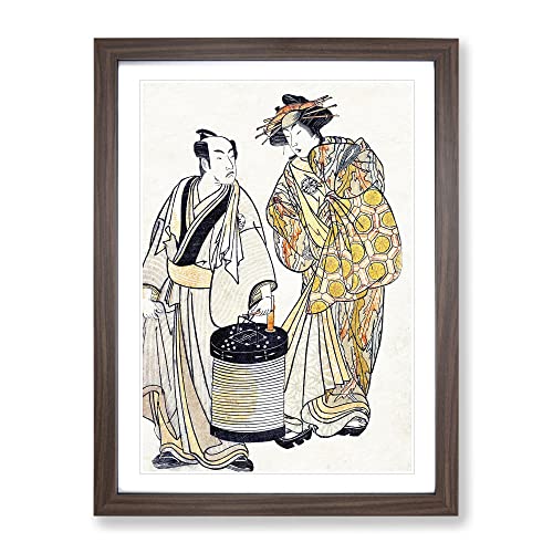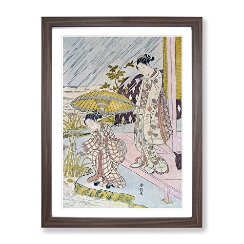 Admiring An Iris In The Rain By Harunobu Suzuki Asian Japanese Framed Wall Art Print, Ready to Hang Picture for Living Room Bedroom Home Office Décor, Walnut A3 (34 x 46 cm)