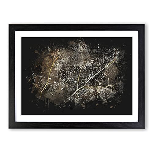 The Beauty Of An Autumn Leaf Paint Splash Modern Art Framed Wall Art Print, Ready to Hang Picture for Living Room Bedroom Home Office Décor, Black A4 (34 x 25 cm)
