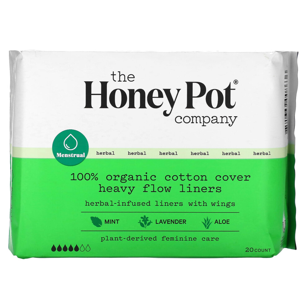 The Honey Pot Company, 100% Organic Cotton Cover Heavy Flow Liners, 20 Count