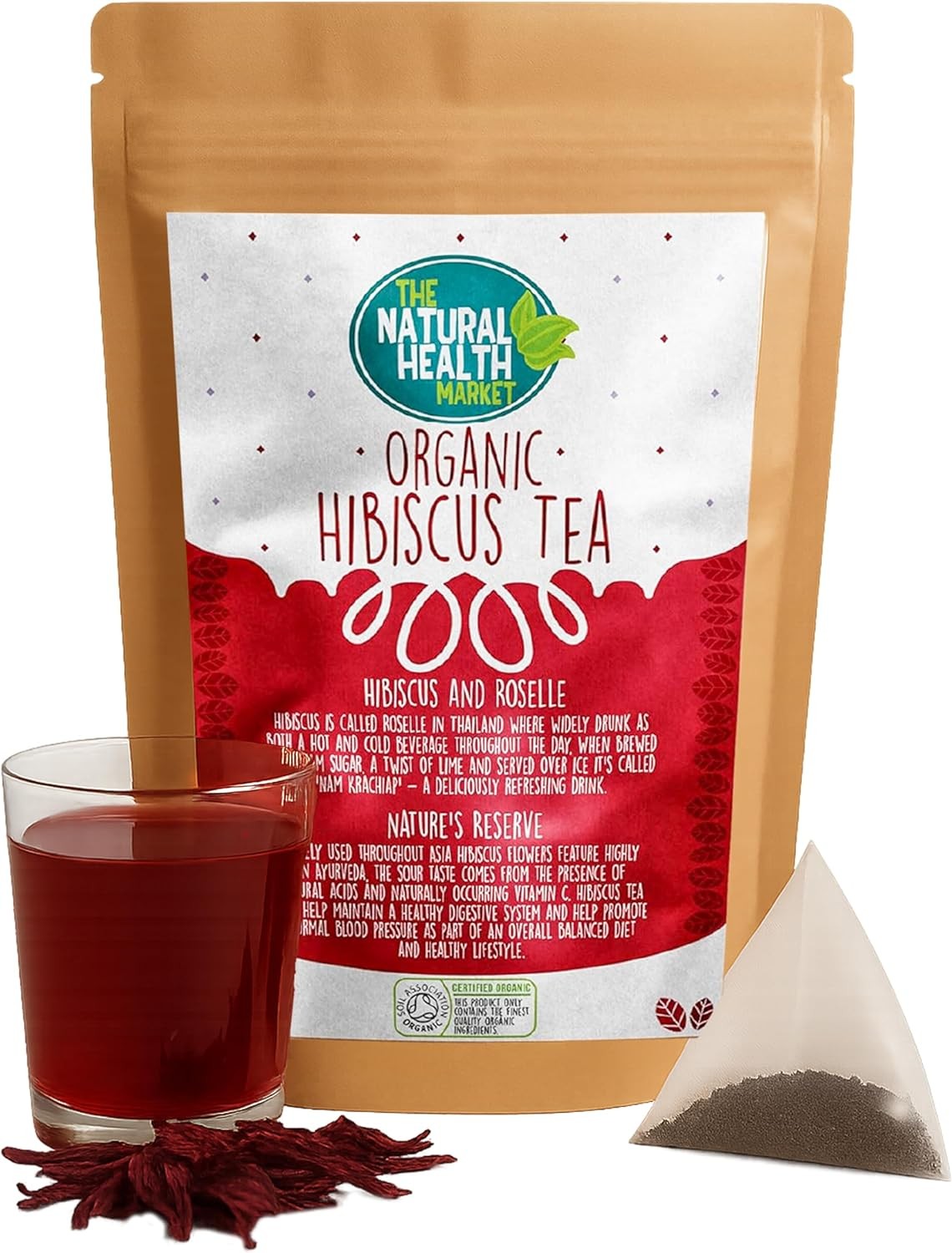 The Natural Health Market, Organic Hibiscus Tea Bags - 50 Count | 100% Natural