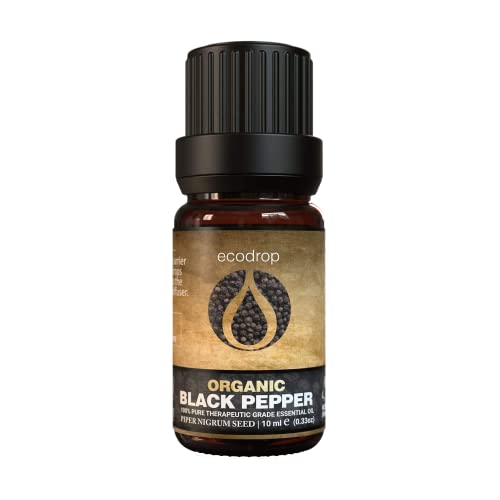 Ecodrop Black Pepper Essential Oil - 10ml | 100% Natural Therapeutic Grade Indian Piper Nigrum Oil | Organic Aromatherapy Diffuser & Massage Oil for The Mind, Mood, Muscle Tension, Stress & Focus