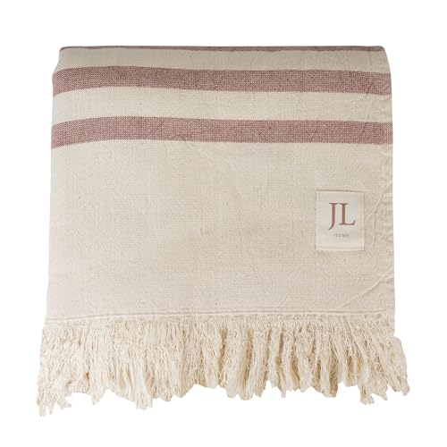 Jean & Len 100% Organic Cotton Beach Towel with Fringes, Oeko-Tex & GOTS Certified, Soft Cotton Fabric on the Front and Absorbent Terry Cloth on the Back, Beach Towel, 90 x 165 cm