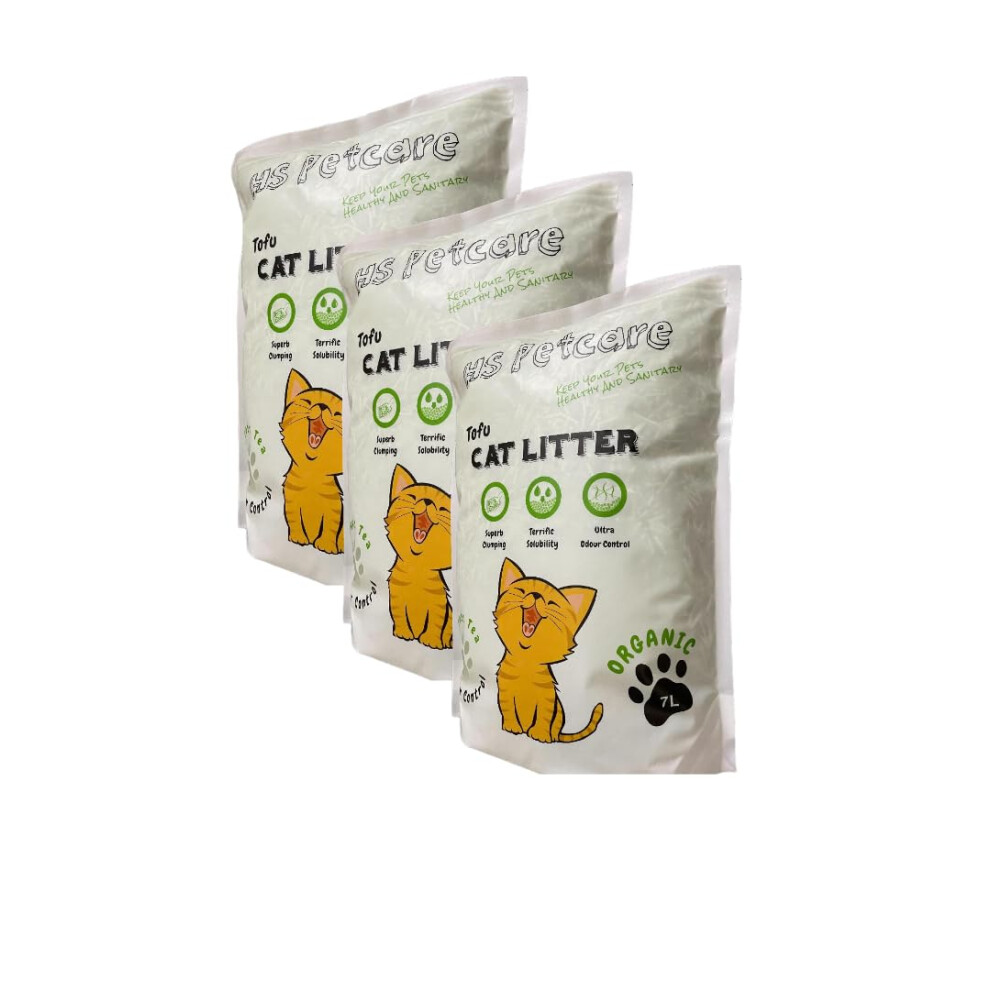 HS Petcare Organic Tofu Cat Litter Original Scent, Ultra clumping, Great odour control, Flushable reduce waste, Long lasting Dust free (Pack of 3