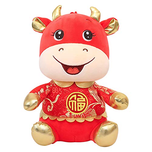 Fictory Fortune Ox Plush Toy, Year of the Ox Mascot Doll, 25cm Soft Stuffed Animal with Electronic Embroidery, Lucky Home Decor, Car & Garden Decoration, Cute Gift for Festivals