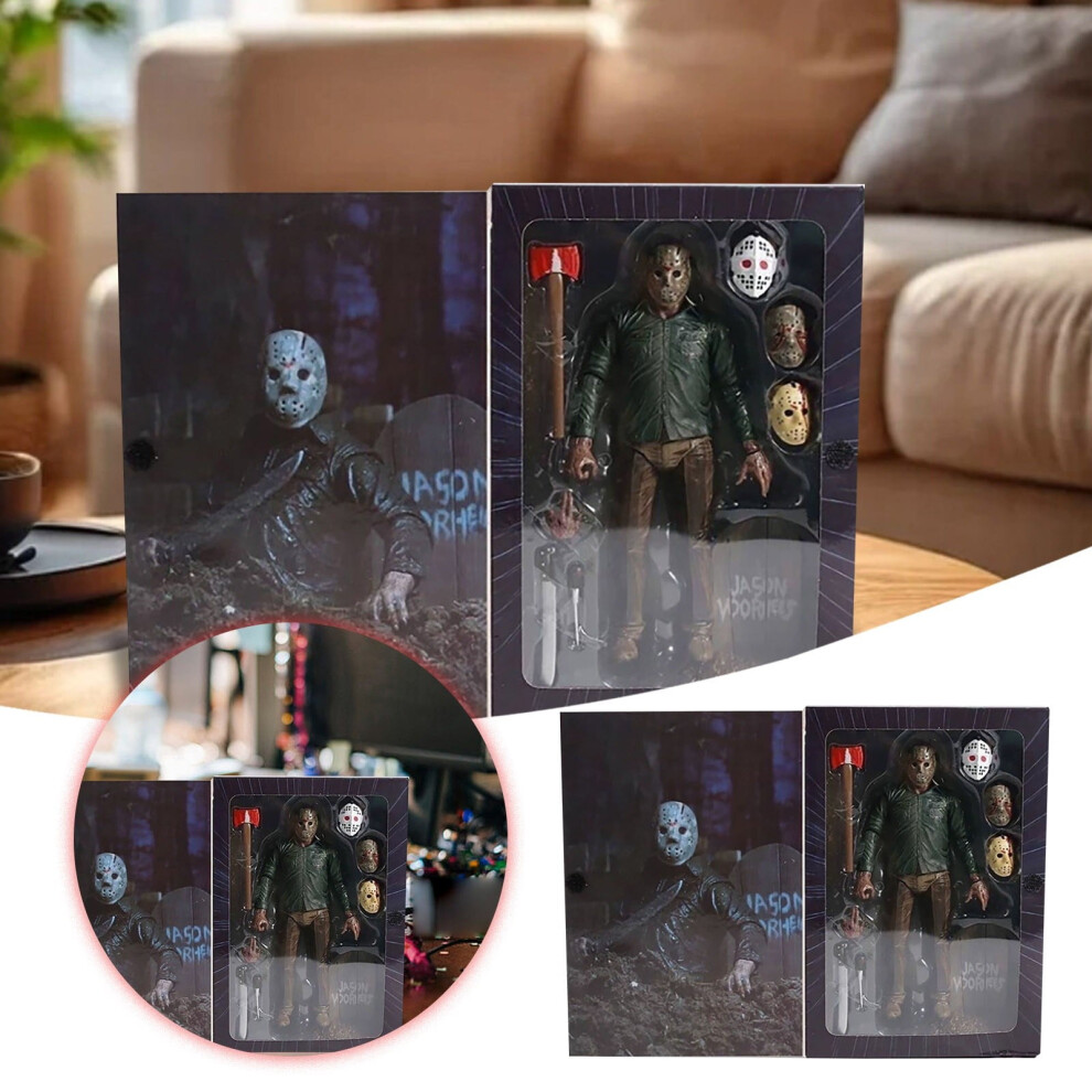 7In Jason Voorhees Character Action Figures Set Movie Friday The 13Th Figurine Peripheral Decoration(Black)#8934