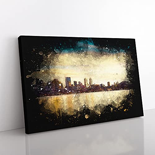 Big Box Art Reflections of The Auckland Skyline Paint Splash Canvas Wall Art Print Ready to Hang Picture, 76 x 50 cm (30 x 20 Inch), White, Grey, Black