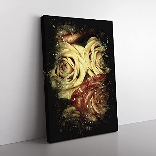 Big Box Art View of The Roses Paint Splash Canvas Wall Art Print Ready to Hang Picture, 76 x 50 cm (30 x 20 Inch), Grey, Olive, Green, Brown