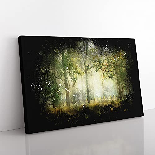 Big Box Art View of The Forest in The Spring Paint Splash Canvas Wall Art Print Ready to Hang Picture, 76 x 50 cm (30 x 20 Inch), White, Grey, Olive, Green, Olive, Green
