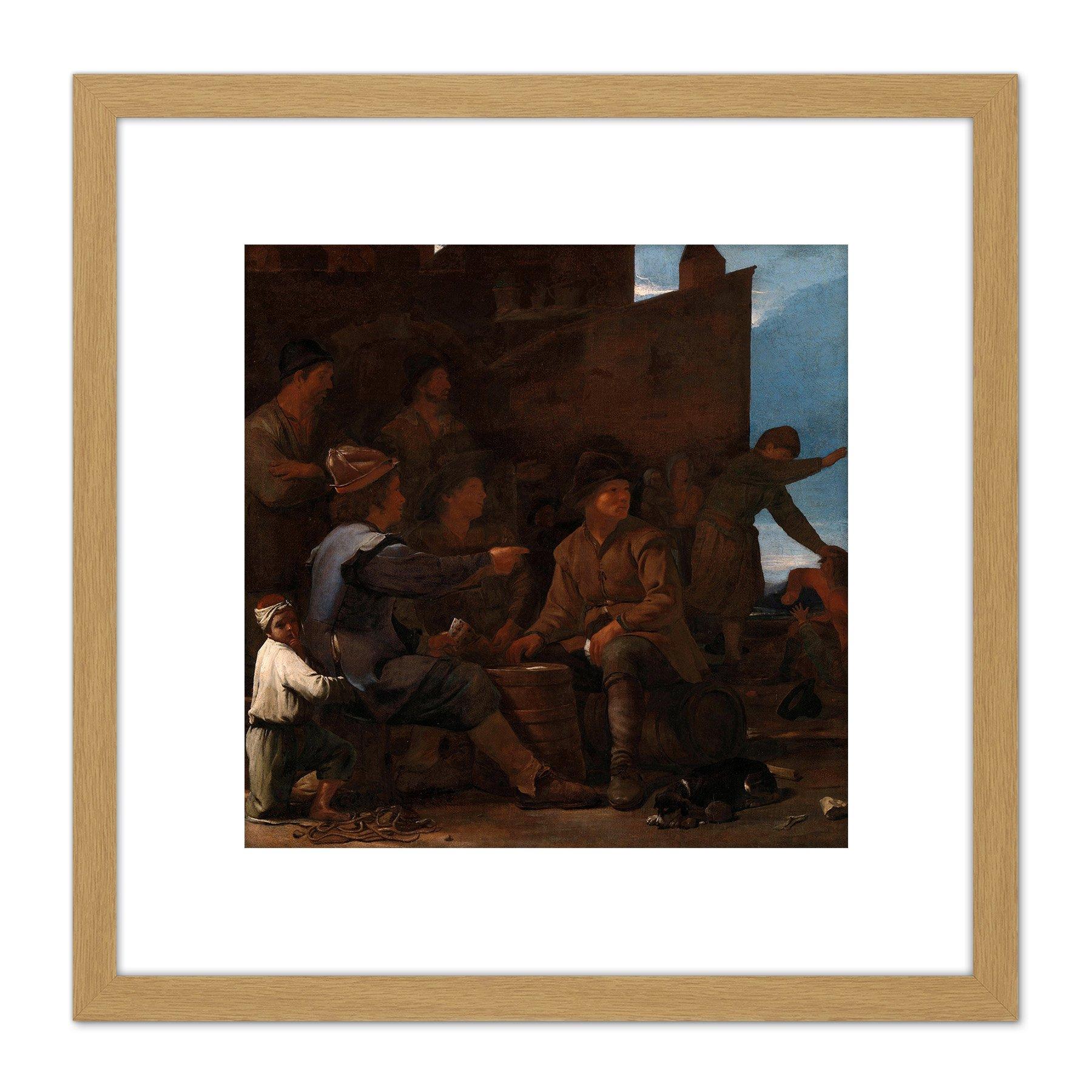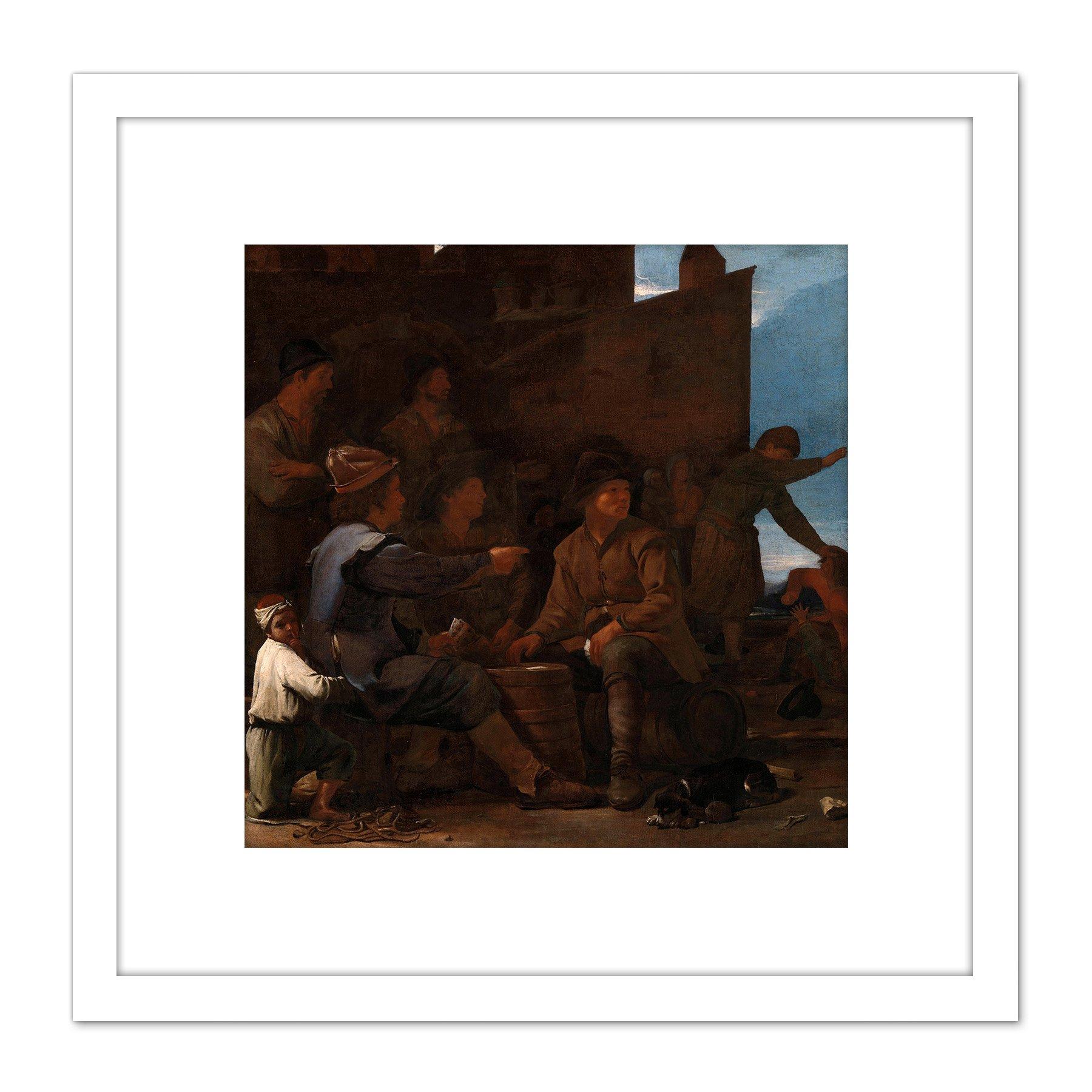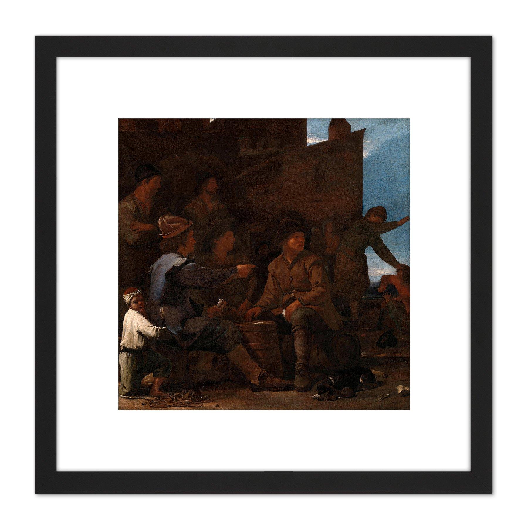 Michael Sweerts The Card Players Painting 8X8 Inch Square Wooden Framed Wall Art Print Picture with Mount