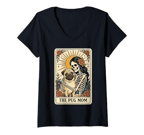 Women's The Pug Mom Tarot Card V-Neck T-Shirt