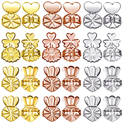 TOAOB 24pcs Earring Lifters Backs for Droopy Ears Gold Silver Rose Gold Large Ear Support Backings Earring Backs Replacements Secure Ear Lockings for Heavy Earrings DIY Jewellery Making