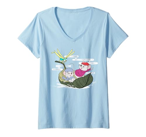 Womens Disney The Rescuers Bernard Bianca Leaf Boat V-Neck T-Shirt