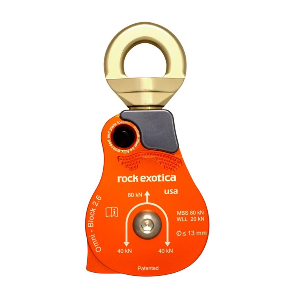 Rock Exotica Omni-Block 2.6"""" Single Swivel Pulley - High-Strength Swivel Pulley with Sideplate Access for Rigging - Made in The USA